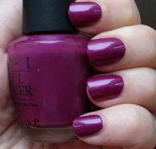 Je to barva rozmačkaných lesních plodů, tmavo fialovo - červená s modravými odlesky, které jsou viditelné v lahvičce, ale na nehtu je vidíte pouze na přímém sluníčku, nebo v případě, že budete nehet pozorovat u centimetrové vzdálenosti od obličeje.