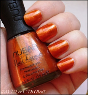 Nubar Bronzo, moje představa bronzu v tomto případě dostala na frak, protože Nubar Bronzo je spíš oranžový, na mě je to taková ta nepřitažlivá kombinace červeno-oranžovo-hnědé. (Více ZDE). Pokud hledáte podobný lak jukněte na OPI Take the stage./ Nubar Bronzo is an interesting rusty shade, cross between orange, red and brown which sadly clashes with my skintone.